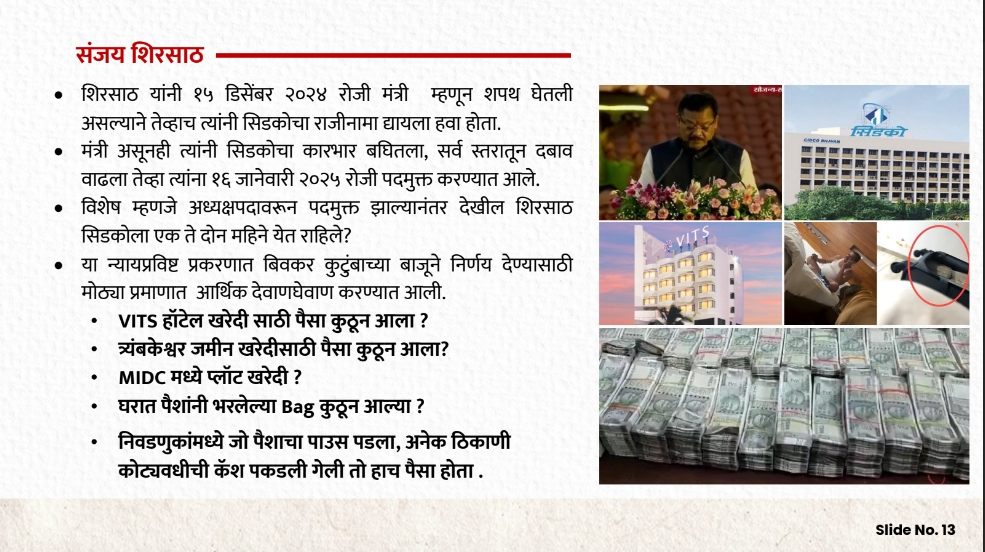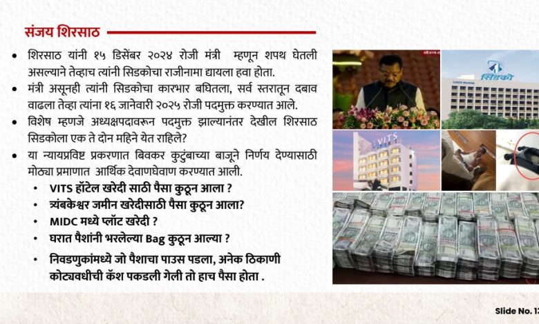 * मंत्री संजय शिरसाठ यांनी नैतिकता बाळगून आपल्या पदाचा राजीनामा द्यावा.