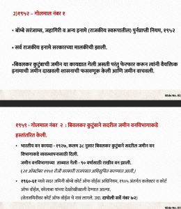 * बिवलकर कुटुंबाला बेकायदेशीरपणे दिलेली ही जमीन त्वरित परत घेण्यात यावी.